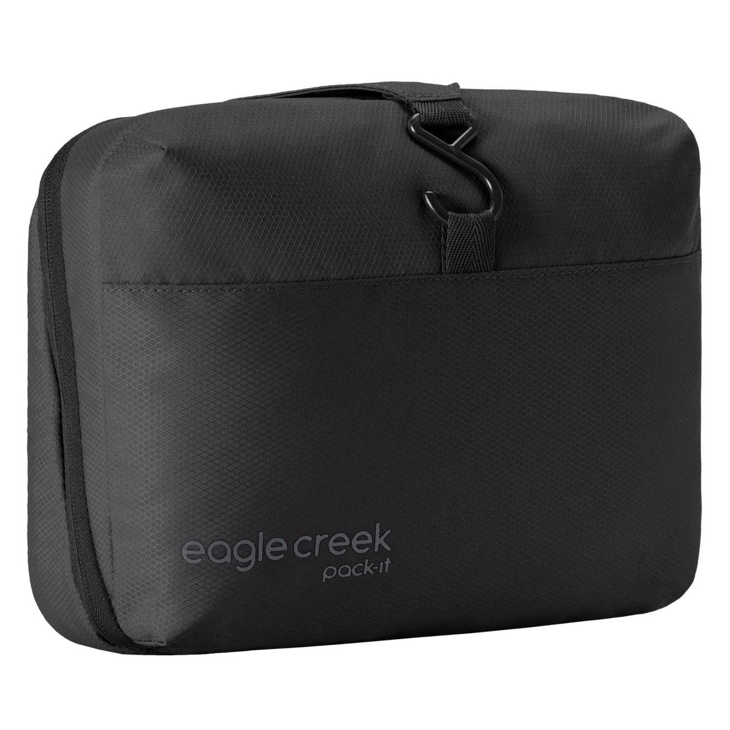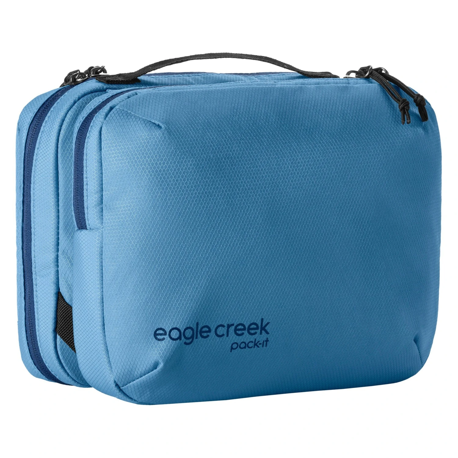 Like a traveling bathroom cabinet, this hanging bag organizes toiletries and makes them easy to spot and grab. Elastic and zippered pockets secure bottles in place, and dual compartments separate contents. Structured, 100% recycled water-resistant fabric protects against splashes and speeds cleanup of toothpaste or lotion.